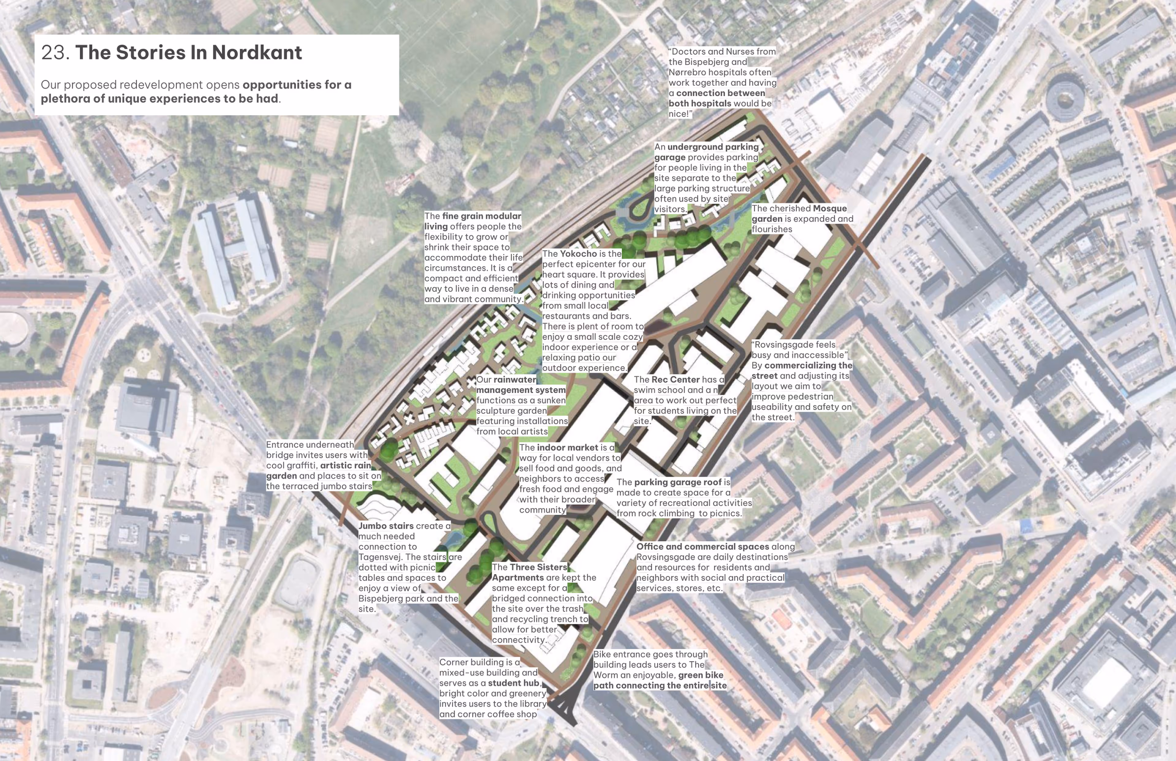 This project was created alongside Sara Browne as part of an Urban Design Foundations Studio taken in Copenhagen, Denmark. This 15-week project was an exploration of a potential redevelopment of a site located in the Copenhagen neighborhood of Nørrebro.