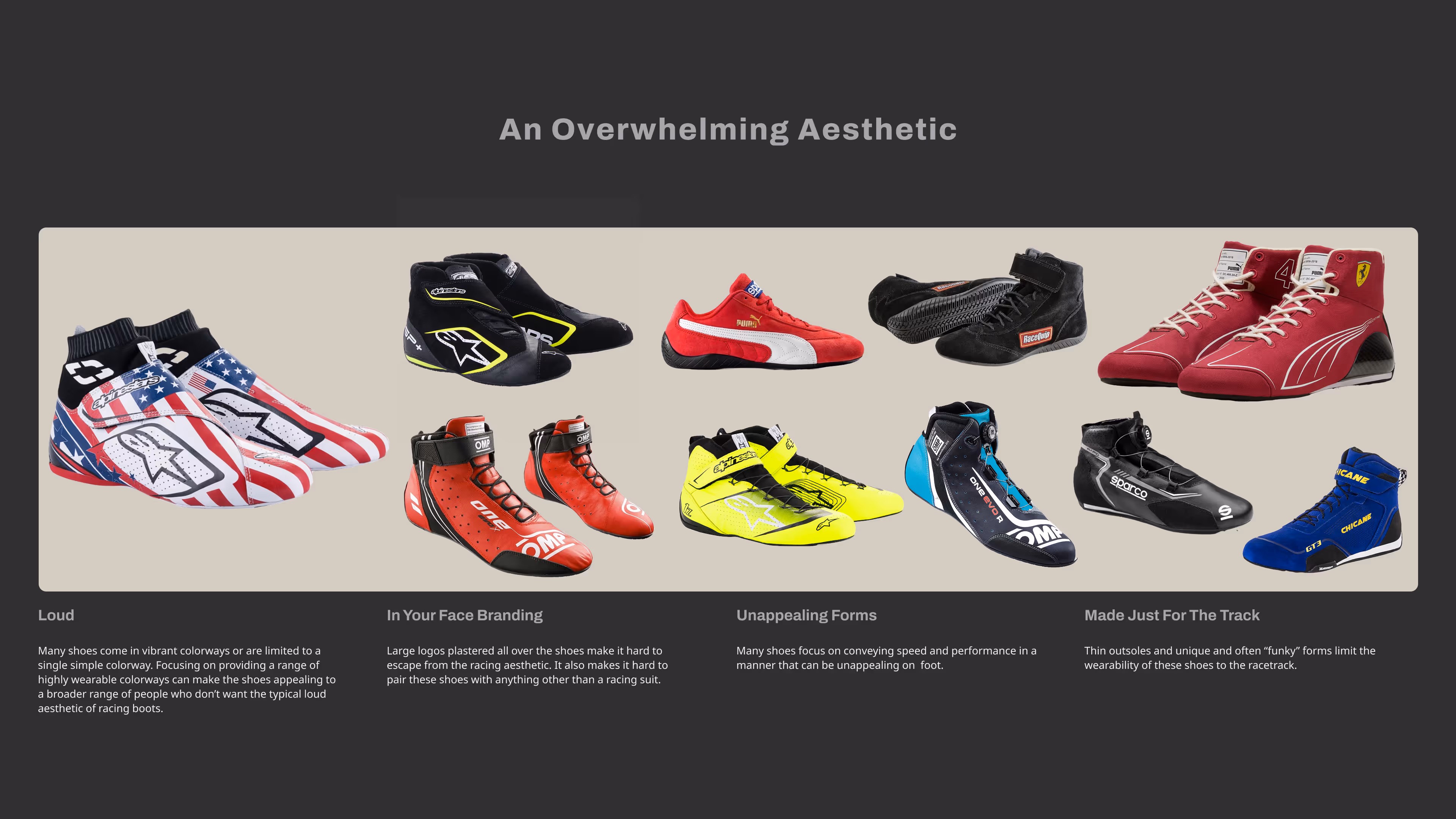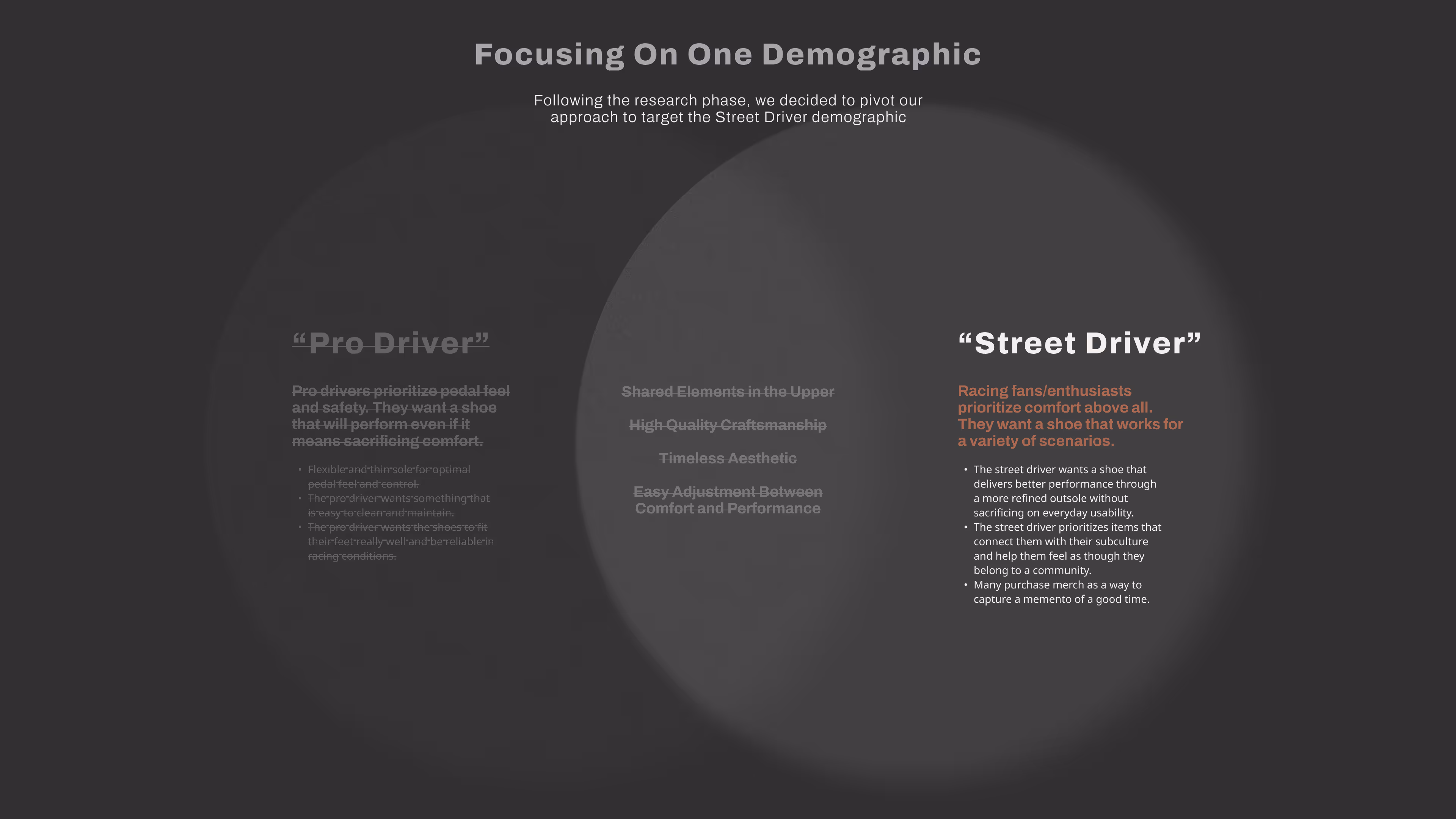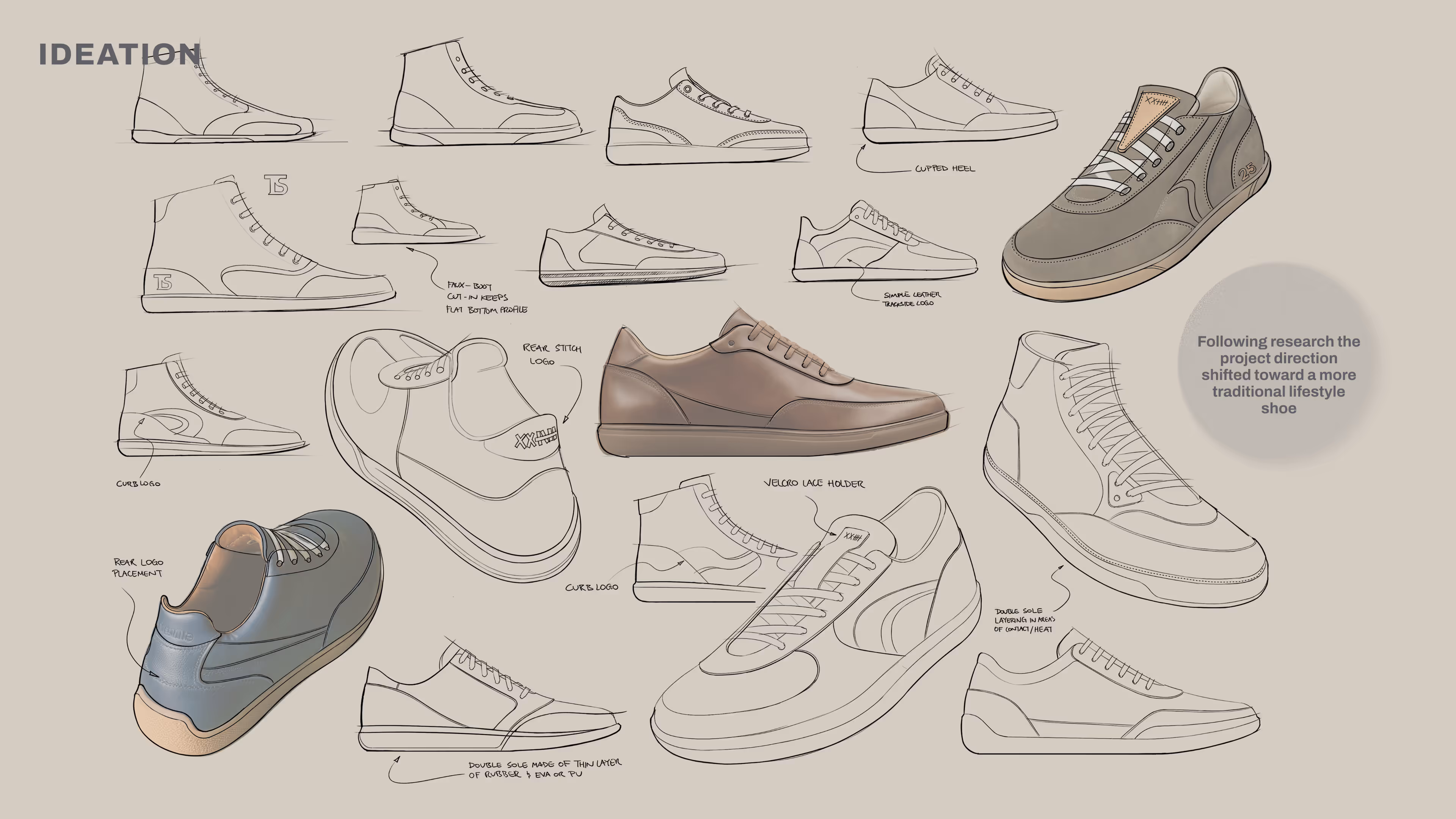 Hired on as a Freelance Industrial Designer to lead a project from research to finished prototype. Created a lifestyle and auto racing shoe crossover concept. Conducted market research at nationwide racing events, ideated on a broad range of concepts, and handmade a pair of shoes to be displayed at the Detroit Auto Show.